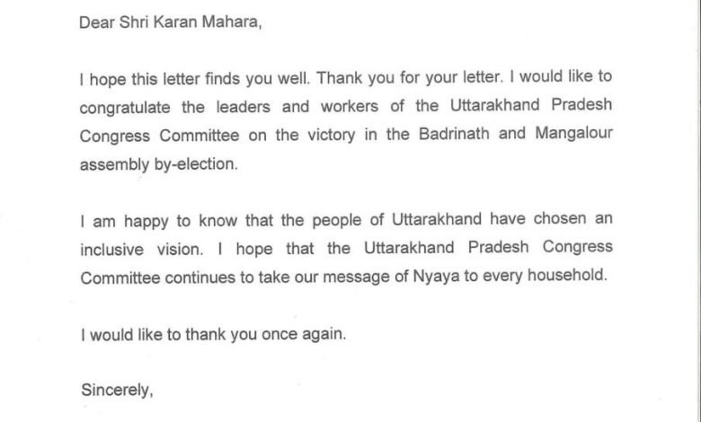 उपचुनाव में जीत के बाद राहुल गांधी ने लिखा प्रदेश अध्यक्ष को पत्र, जल्द आ सकते हैं उत्तराखंड